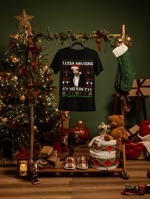 -La imagen del producto muestra una escena festiva con un árbol de Navidad y Papá Noel. Esta imagen sugiere un artículo con temática navideña, ideal para ocasiones festivas. La camiseta de manga corta es perfecta para decoraciones navideñas. 🎅