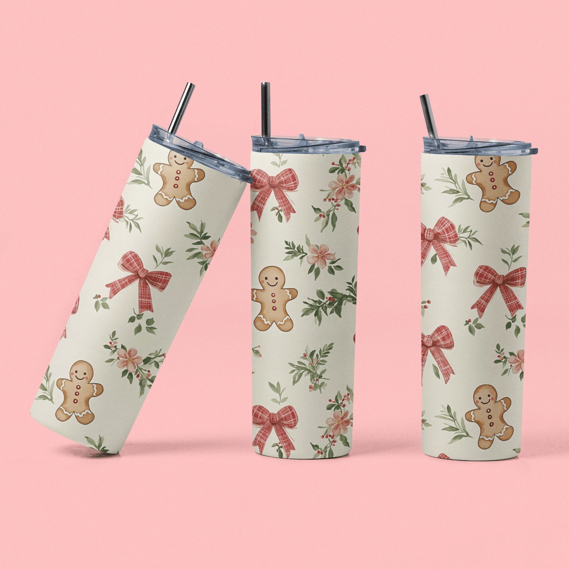 Gingerbread and Ribbon Christmas 20oz Tumbler