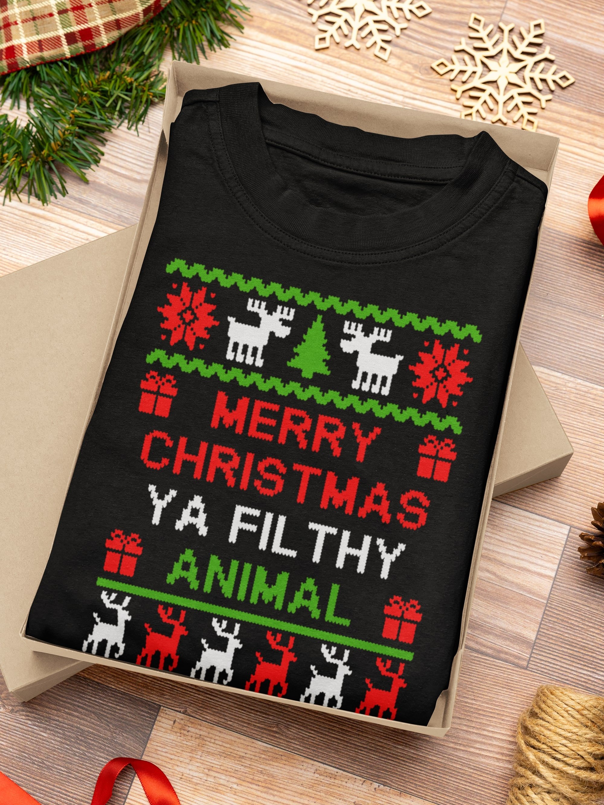Title: Merry Christmas Ya Filthy Animal Ugly Short-Sleeve T-Shirt Medium Size Black Tee