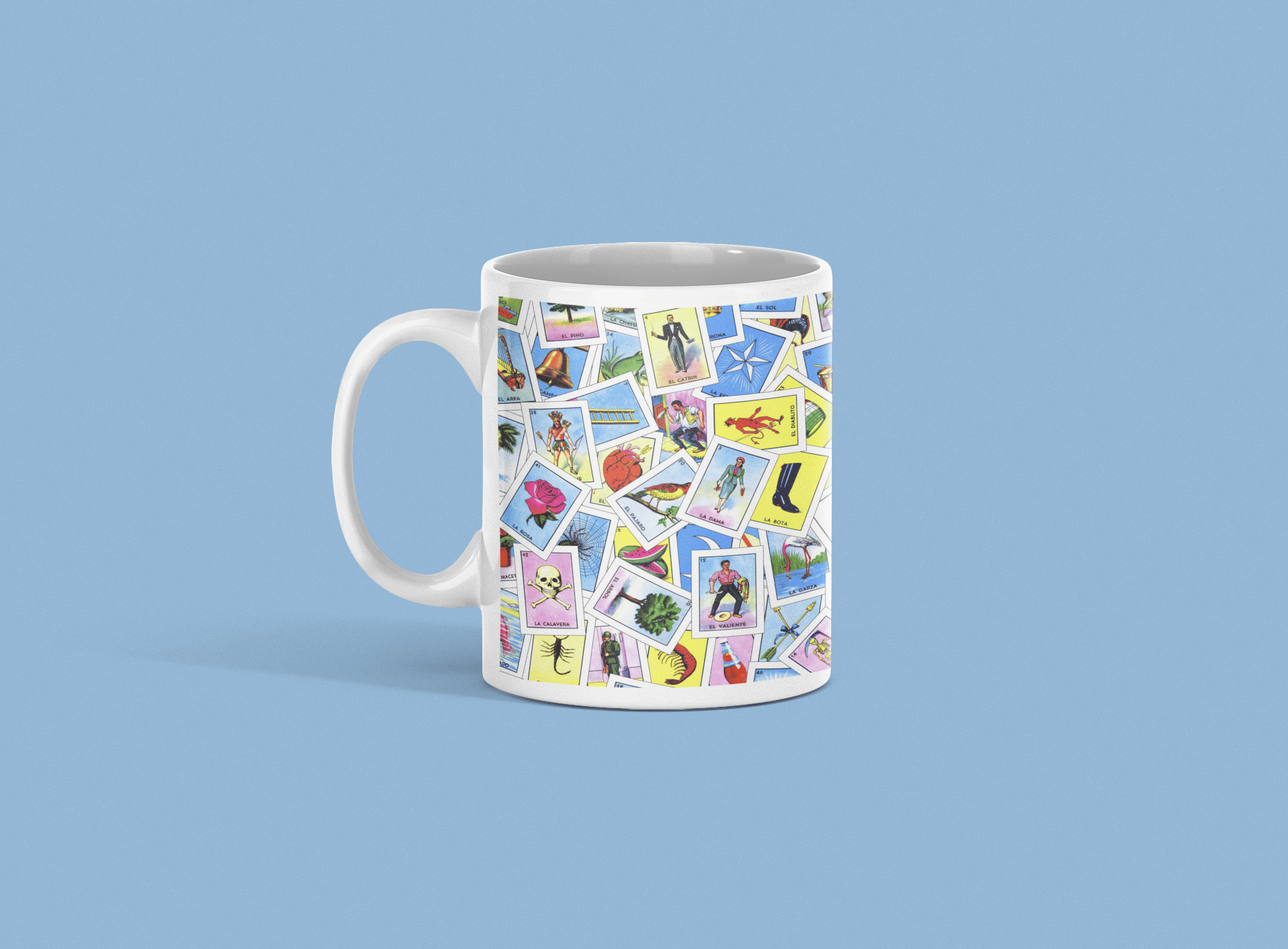 Elevate your morning with our Retro LoterĂa Coffee Mug! It showcases a colorful collage of LoterĂa cards, evoking joy and memories. Perfect for coffee, tea, or any beverage, it's a stylish kitchen addition or a thoughtful gift. Start your day with a nostalgic touch.